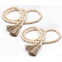 Amazon Com 3 Pieces Wood Bead Garlands 51in Farmhouse Beads Bobo Decor Rustic Bead Garlands With Tassels Country Decorations Holiday Favor Home Kitchen
