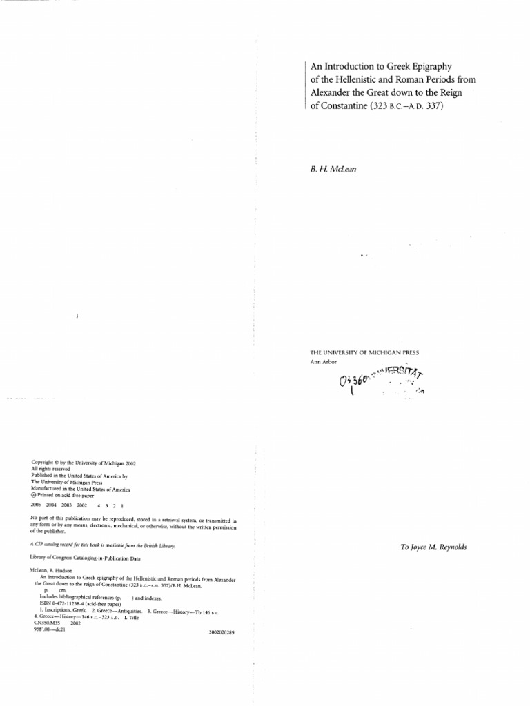 B H Mclean An Introduction To Greek Epigraphy Of The Hellenistic And Roman Periods From Alexander The Great Down To The Reign Of Constantin Pdf Epigraphy Linguistics